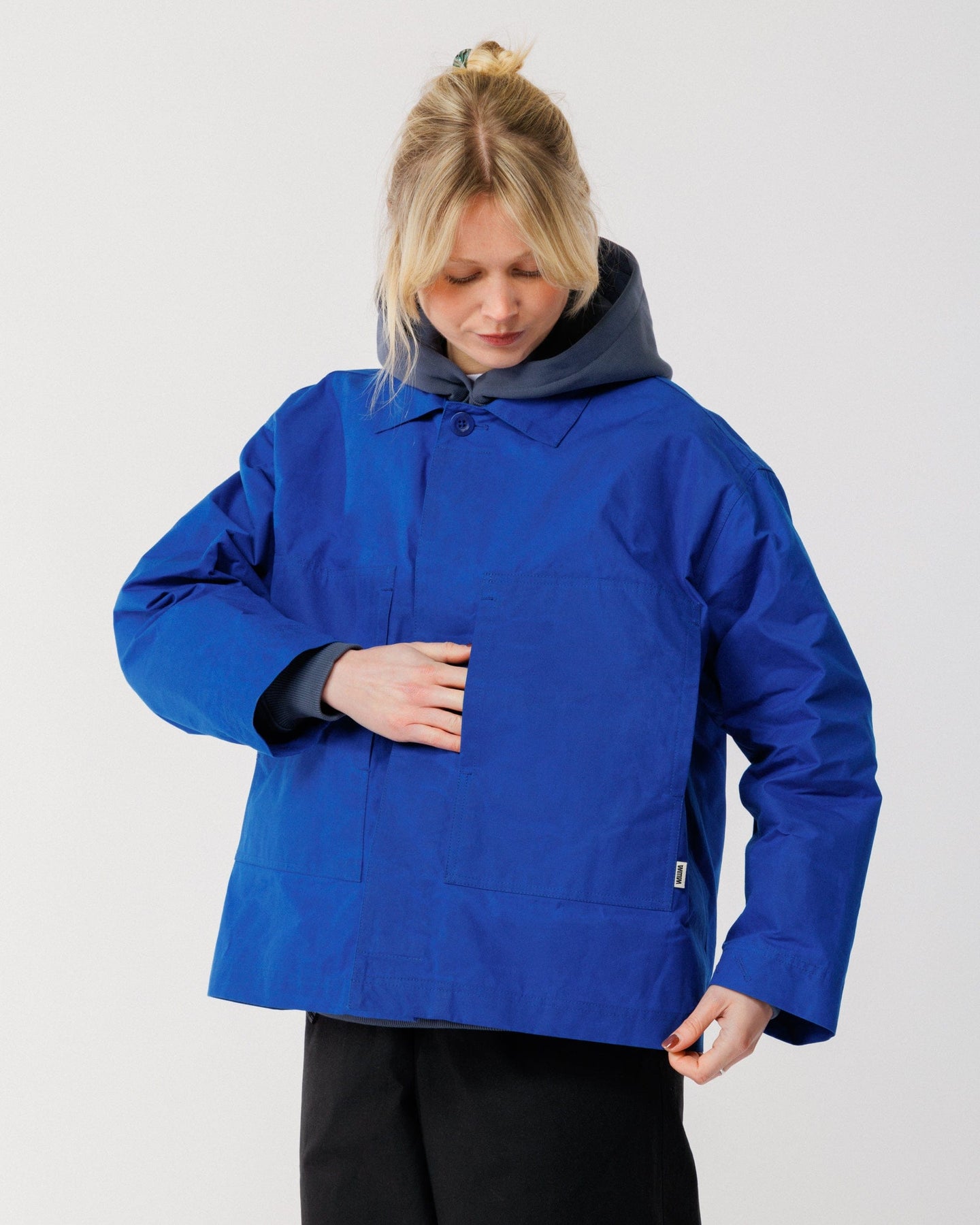 The Cobalt Blue Nell Jacket combines everyday practicality with statement style. Crafted in striking Cobalt Blue premium Scottish dry-waxed cotton canvas, bringing a contemporary edge to a classic utilitarian design.