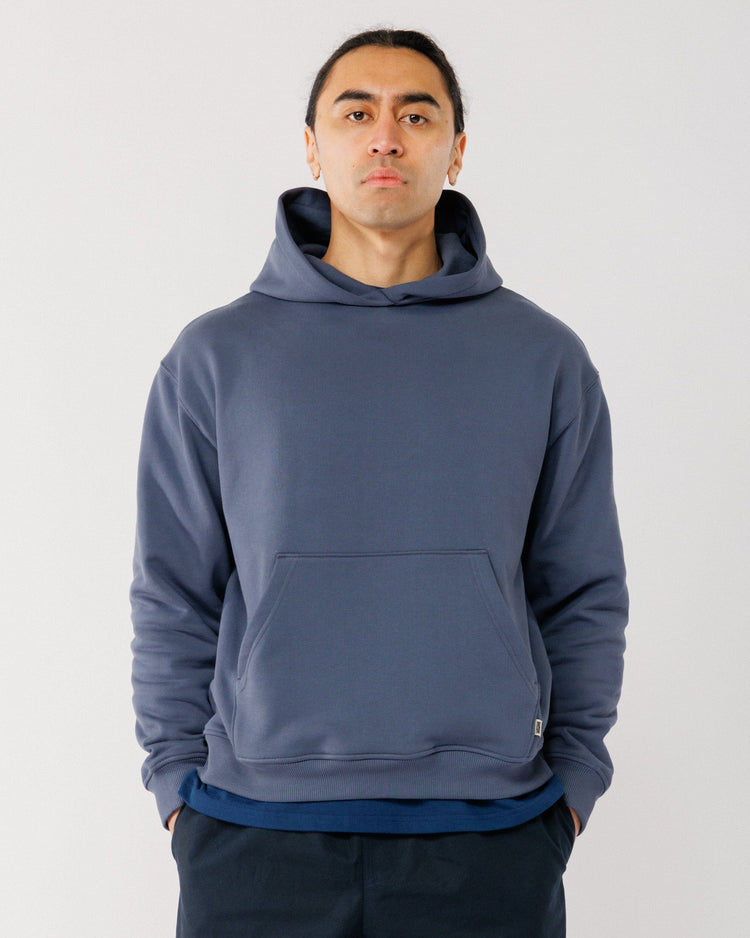 The UK Made 520 Organic Hoody in Navy is a heavyweight staple built to last. Crafted from 520gsm organic loopback cotton, this hoody delivers warmth, comfort, and durability in a considered, modern shape.