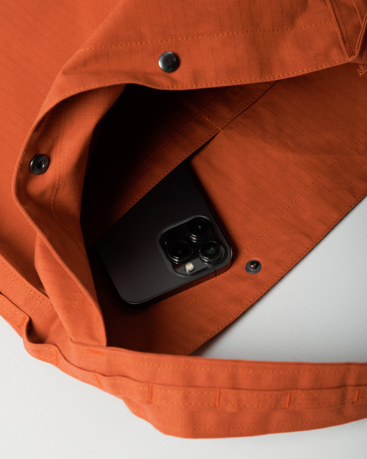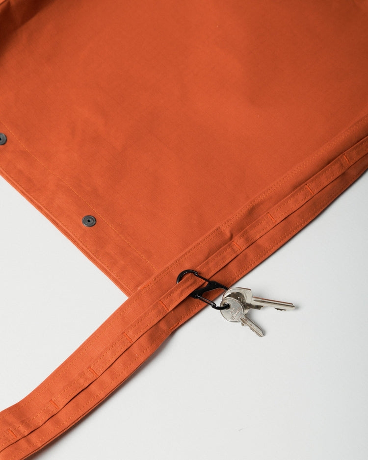 Reinforced bar-tacked loops and included S-clips let you customise your carry - from keys to bottles to on-the-go essentials. A snap-fastened top keeps everything secure, while the internal pocket makes it easy to stay organised. The self-lined construction ensures lasting durability without extra bulk, and the thick strap sits comfortably on your shoulder, whether you’re navigating the city or heading outdoors.