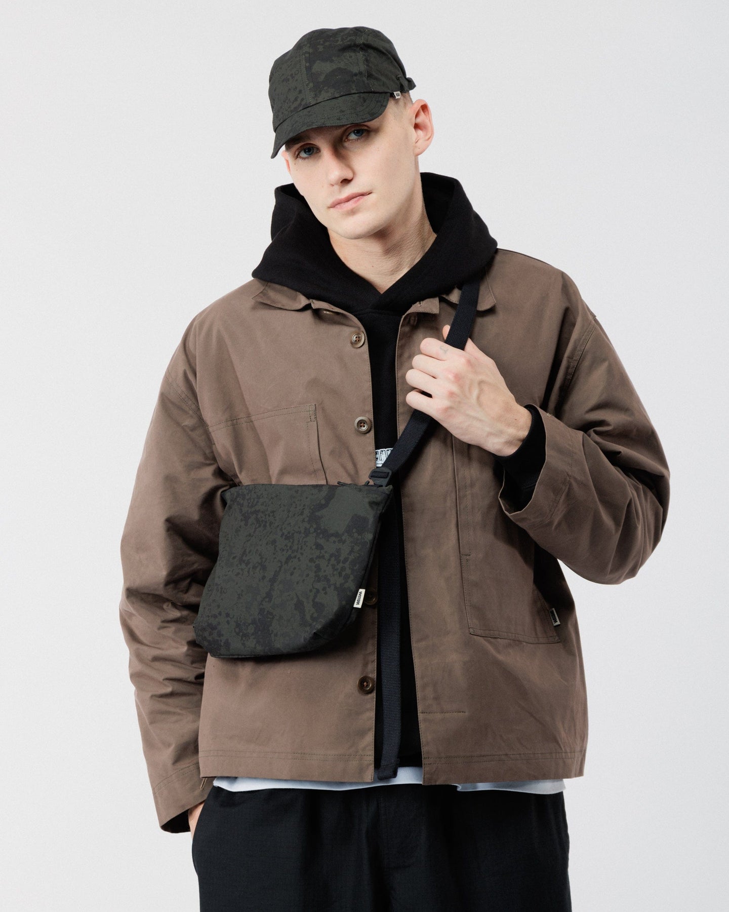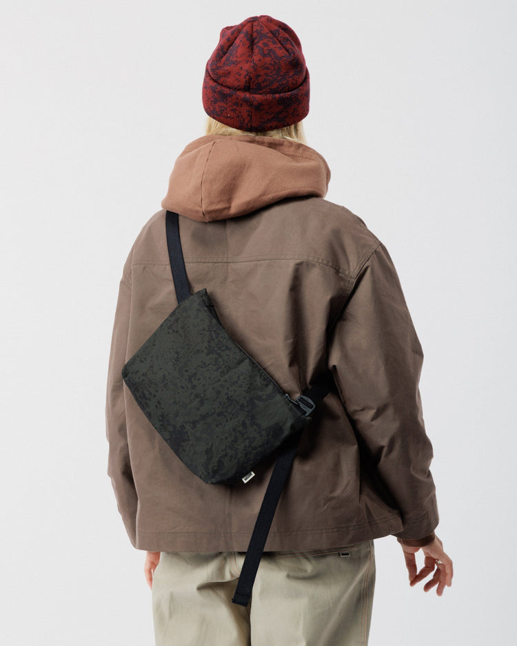 A downsized take on our best-selling Messenger, the Mini Messenger Bag now arrives in a Limited Edition Black Ink Print. Crafted from dry wax organic cotton in a subtle camouflage-inspired pattern - reminiscent of ink dispersing through water or lichen spreading across stone - it adds a textured, unique touch to a practical design.