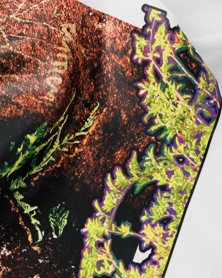The Westing T-shirt in White celebrates the quiet resilience of the British landscape - ferns growing through stone walls in the Peak District, captured in a unique hand-drawn overlay on documentary photography. This combination of artwork and photographic detail creates a striking, textured design that brings the wild edges of the UK into your wardrobe.