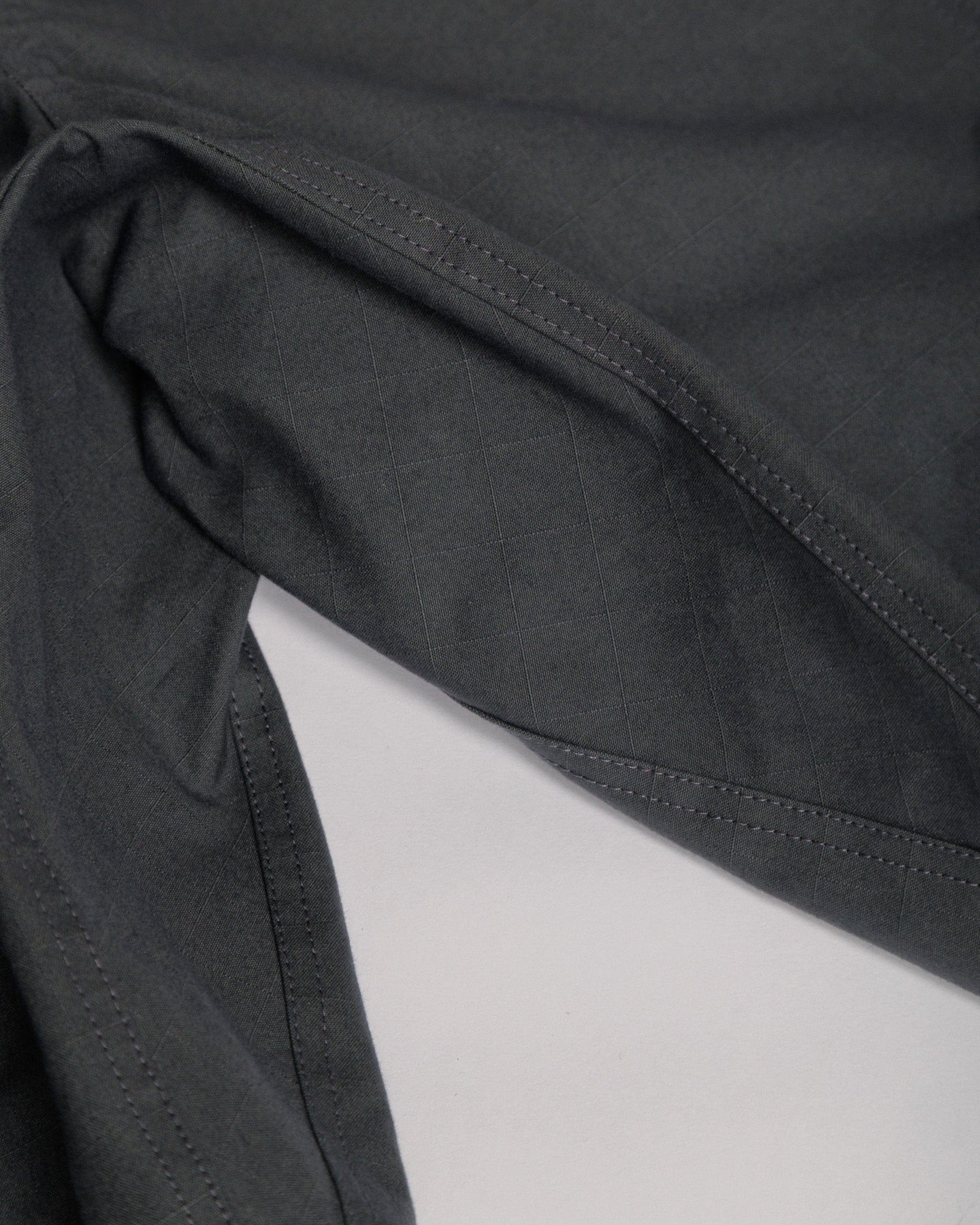Built for the realities of studio life and beyond, the Dry Wax Studio Pant in charcoal takes our original Studio Pant and pushes it further. Crafted from water-resistant, dry-waxed organic cotton ripstop with a wide grid structure, these trousers offer added protection without sacrificing comfort or mobility. Tough, lightweight, and quietly technical, they’re designed to perform in changeable conditions while maintaining a clean, workwear aesthetic.