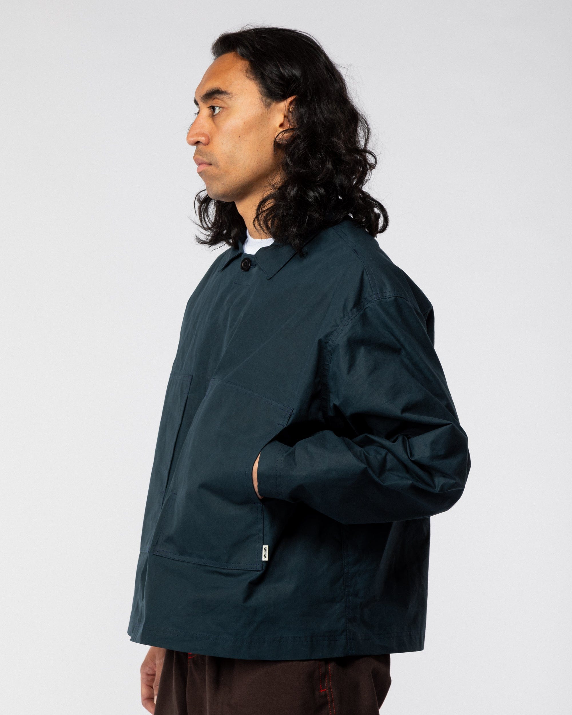 Embrace the depth of our Indigo Blue Nell Jacket, a contemporary take on classic outerwear. This relaxed, boxy-fit jacket showcases thoughtful innovation with its five-pocket system, including cleverly positioned double-layered check pockets and a discrete side-entry hand warmer. Crafted from Scottish dry-waxed cotton canvas from Dundee, it offers lightweight water resistance perfect for unpredictable weather. The jacket features premium corozo nut buttons and adjustable cuffs for a refined finish. Its modular design includes a removable hood system, attached via hidden poppers, offering versatility without compromising style.