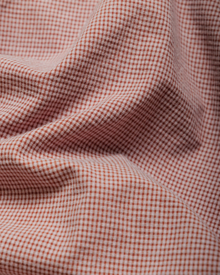 Cut from a lightweight 60% organic cotton, 40% recycled polyester checked fabric, both pieces share the same relaxed, easy fit. The Ezra comes in our signature boxy cut with a button-down collar and asymmetric chest pocket. The Patti Short features two front pleats and an elasticated drawstring waist for a fit you can dial in.
