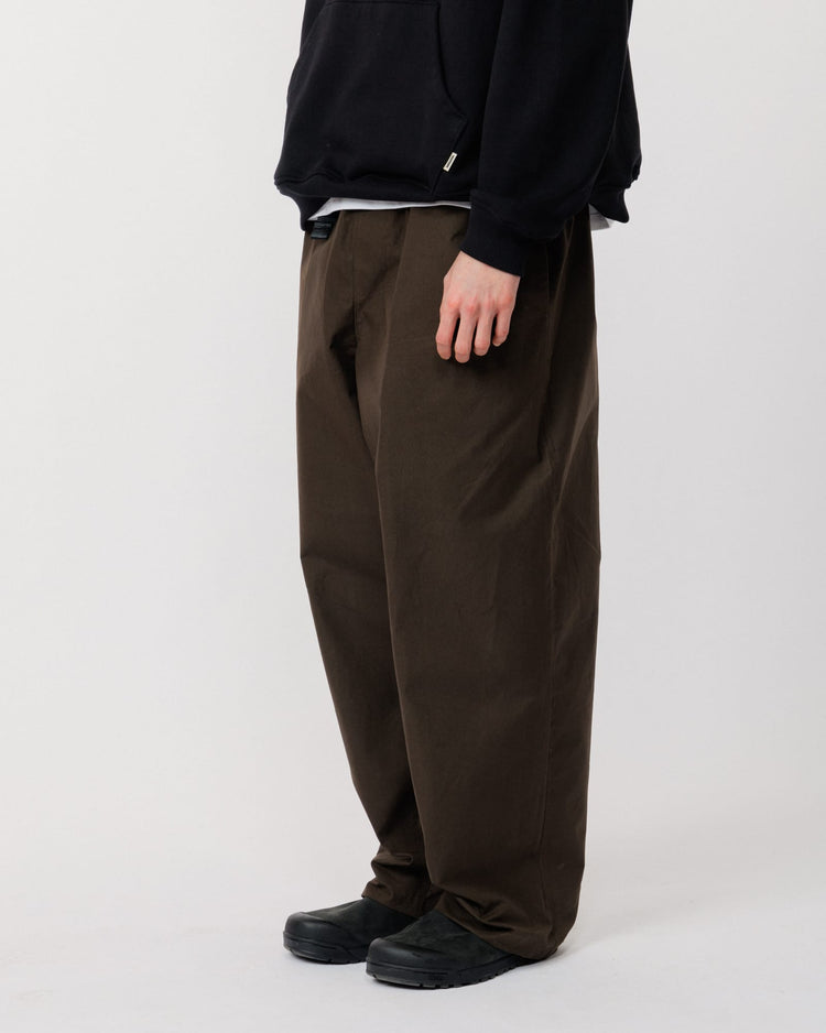 Crafted from cotton twill with a technical water-resistant finish, these pants are soft, structured, and effortlessly wearable. The wide leg silhouette and elasticated waistband create a relaxed, modern shape, while reinforced gussets ensure durability and enhanced ease of movement.