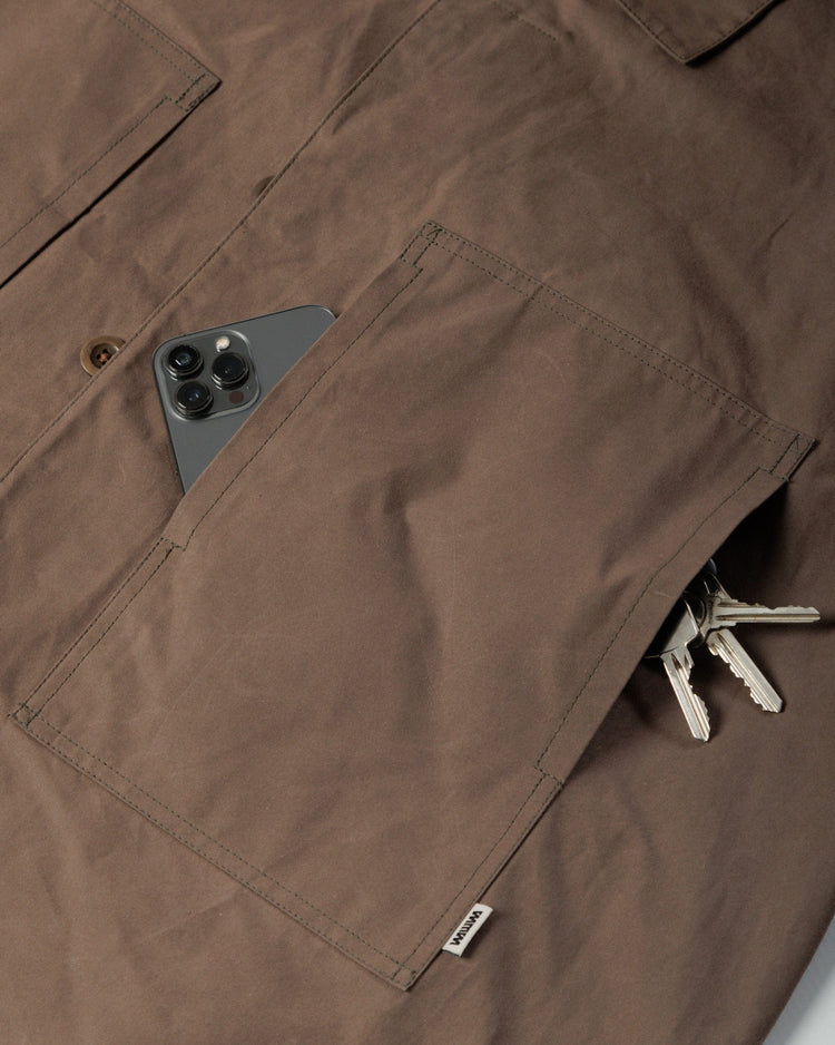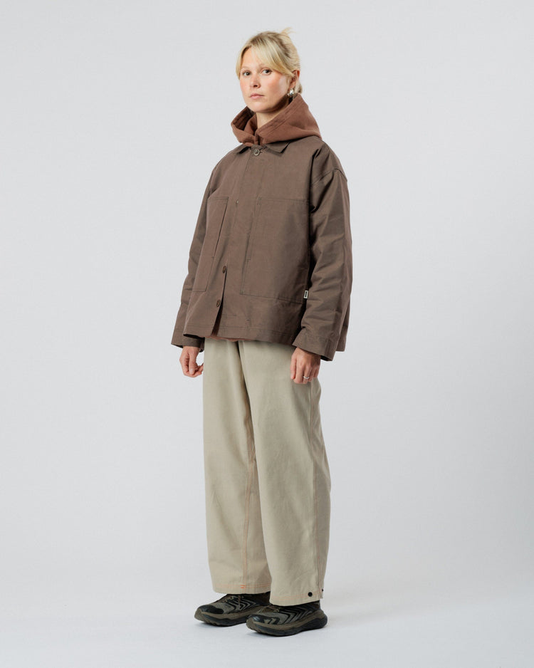 A modern wardrobe essential, the Nell Jacket in bracken brown balances everyday practicality with refined detailing. Its relaxed, boxy fit houses an innovative five-pocket system, including double-layered check pockets and a discreet side-entry handwarmer - functional design that keeps essentials close at hand.