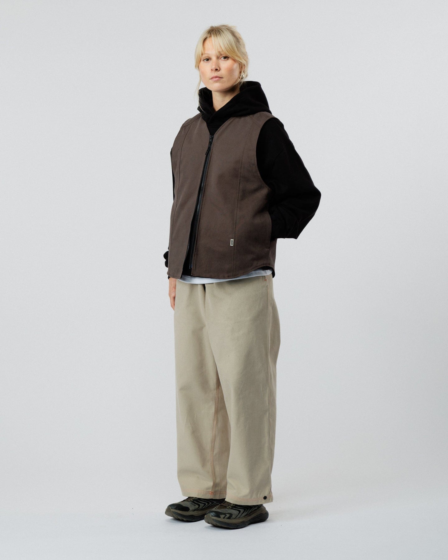 Fit Guide: The Mill Vests have a boxy, relaxed contemporary fit. They're designed to sit comfortably oversized, so if you're between sizes or prefer a more fitted look, we recommend sizing down. For maximum boxiness, size up.