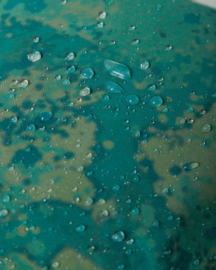 Waxed cotton is a traditional performance fabric made by treating cotton with a protective wax coating. The wax creates a water-repellent barrier while maintaining the natural properties of cotton. Think of it as nature's way of waterproofing – similar to how water beads off duck feathers.