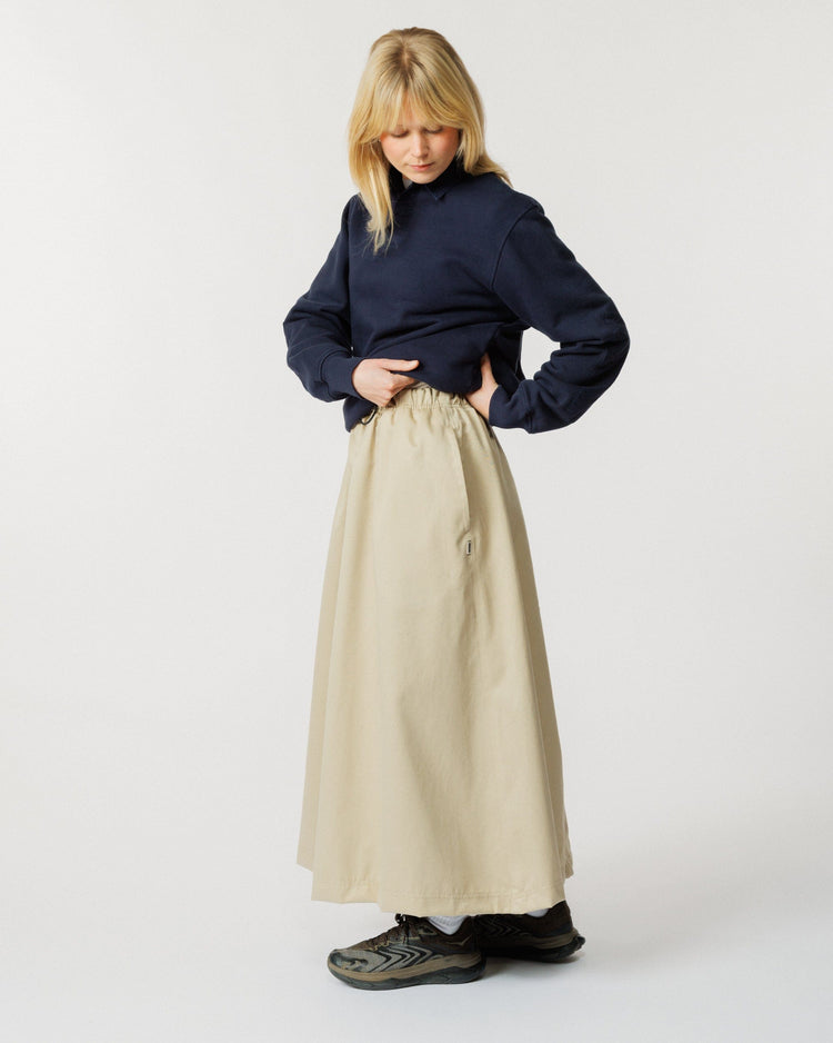 Meet the Moleskin Lined Ayla Skirt in ecru - Our best-selling Ayla Skirt with a winter upgrade. Designed to look and feel just like the original, this version features a premium Italian moleskin lining that adds warmth without bulk. A toasty, cold-weather staple that still drapes beautifully in our signature A-line silhouette. You might even find yourself skipping tights.