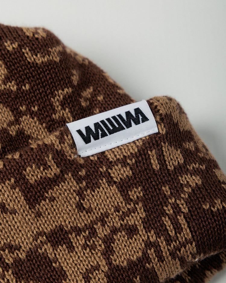 Introducing the brown/bronze Barley Hat, crafted to complement our signature Barley Scarf. Woven from soft, breathable 100% cotton just up the road from our Manchester workshop, this beanie showcases a bespoke jacquard design, where the pattern is woven directly into the fabric structure for durability, soft texture, and a premium finish.