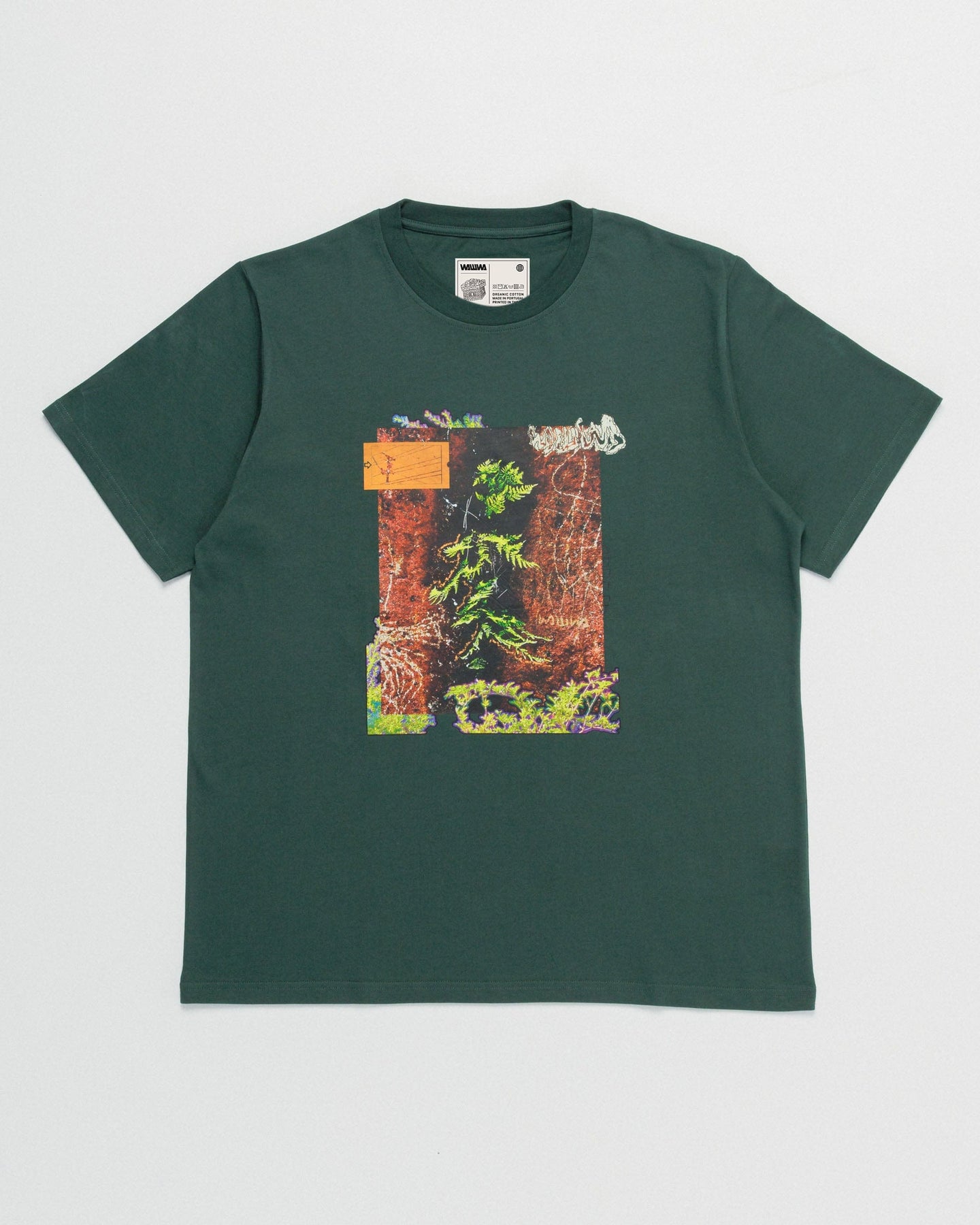 The Westing T-shirt in Forest Green celebrates the quiet resilience of the British landscape - ferns growing through stone walls in the Peak District, captured in a unique hand-drawn overlay on documentary photography. This combination of artwork and photographic detail creates a striking, textured design that brings the wild edges of the UK into your wardrobe.