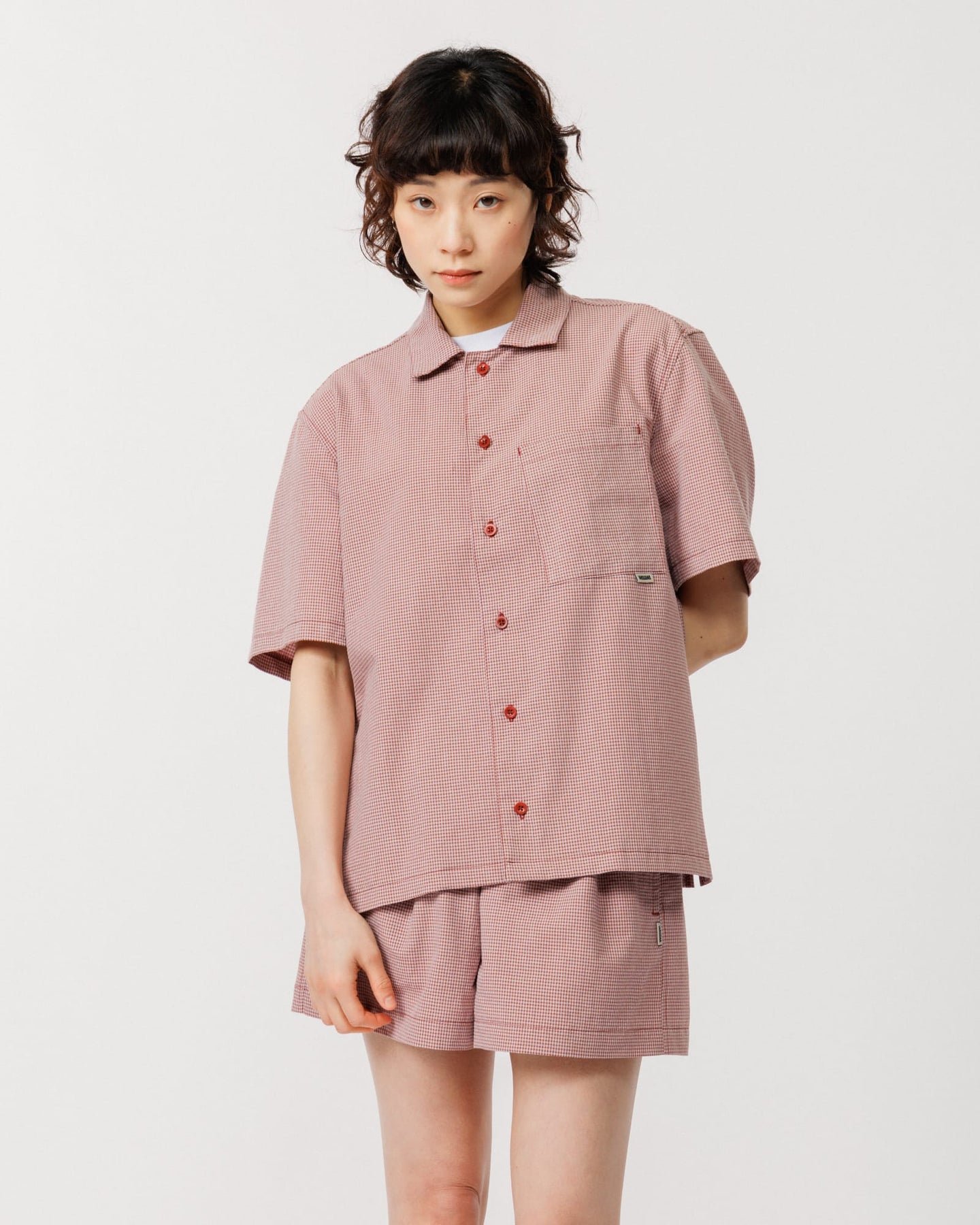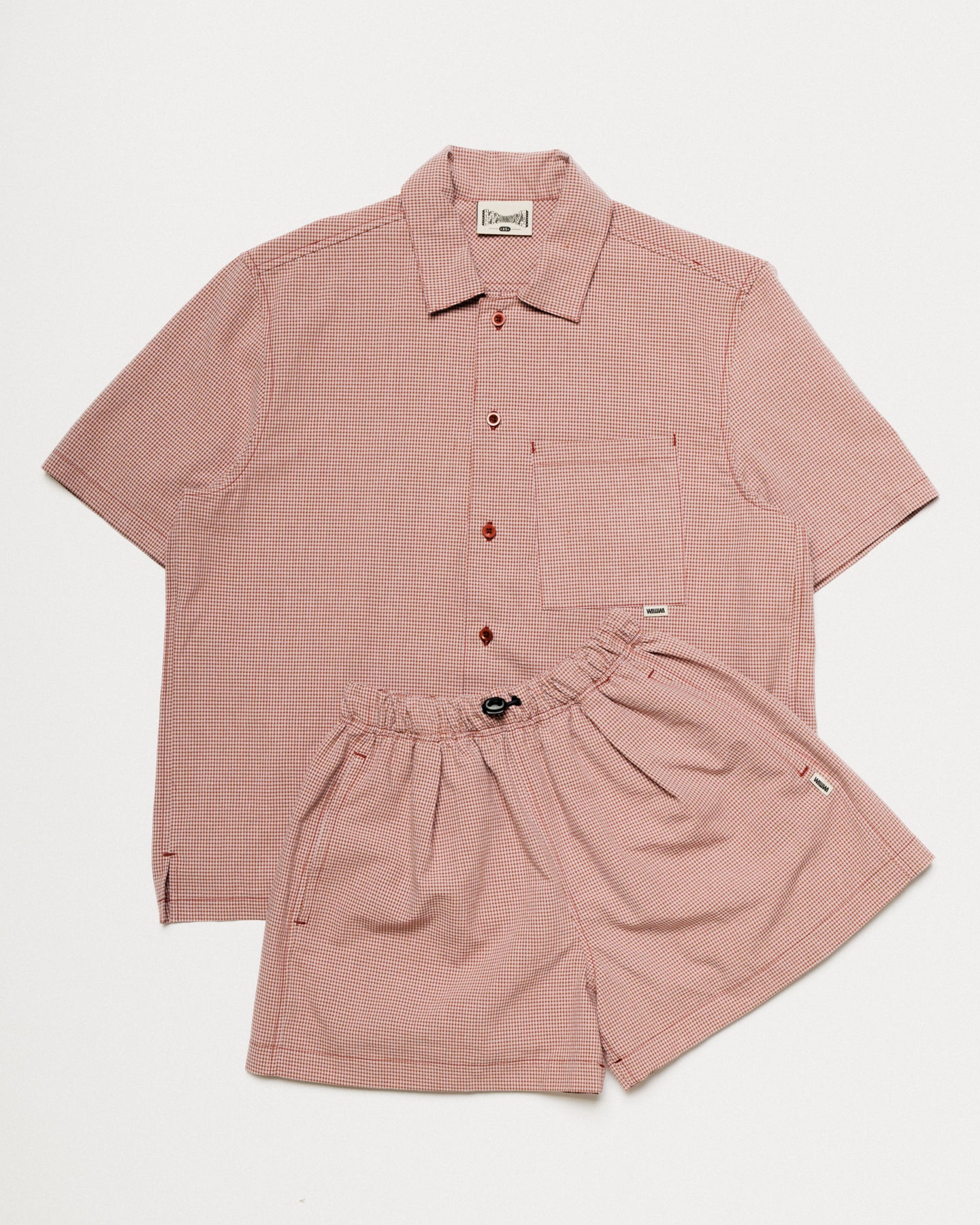 Introducing the Ezra Shirt and Patti Short in a matching red and pink check.