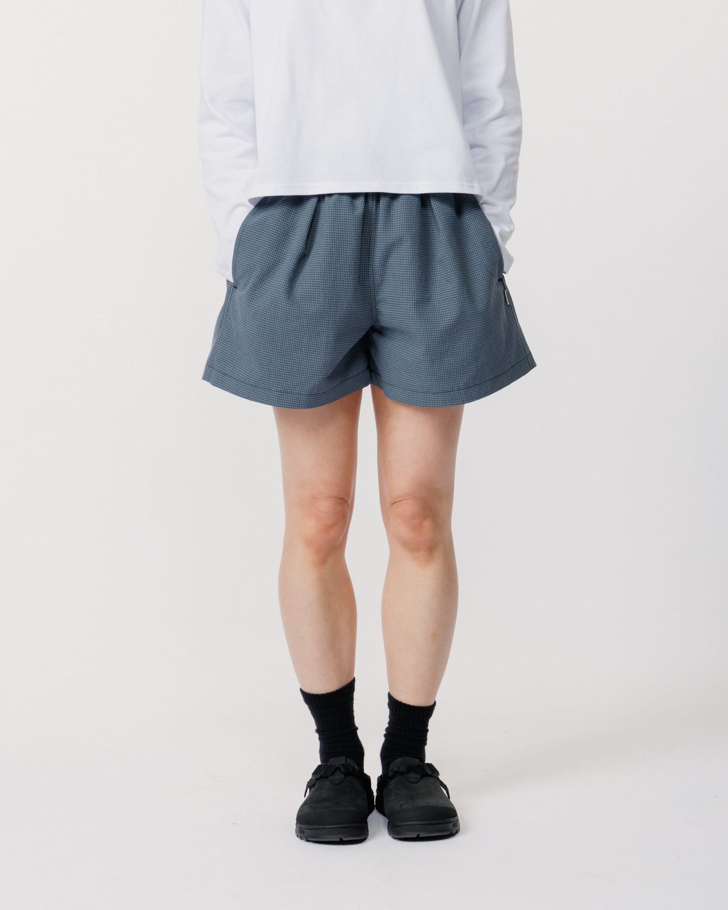 Introducing the Patti Short in navy/blue - cut from a lightweight checked fabric in a organic cotton and recycled polyester blend, these are the shorts you'll reach for whether you're navigating the city, heading to the beach, or out on the hills.