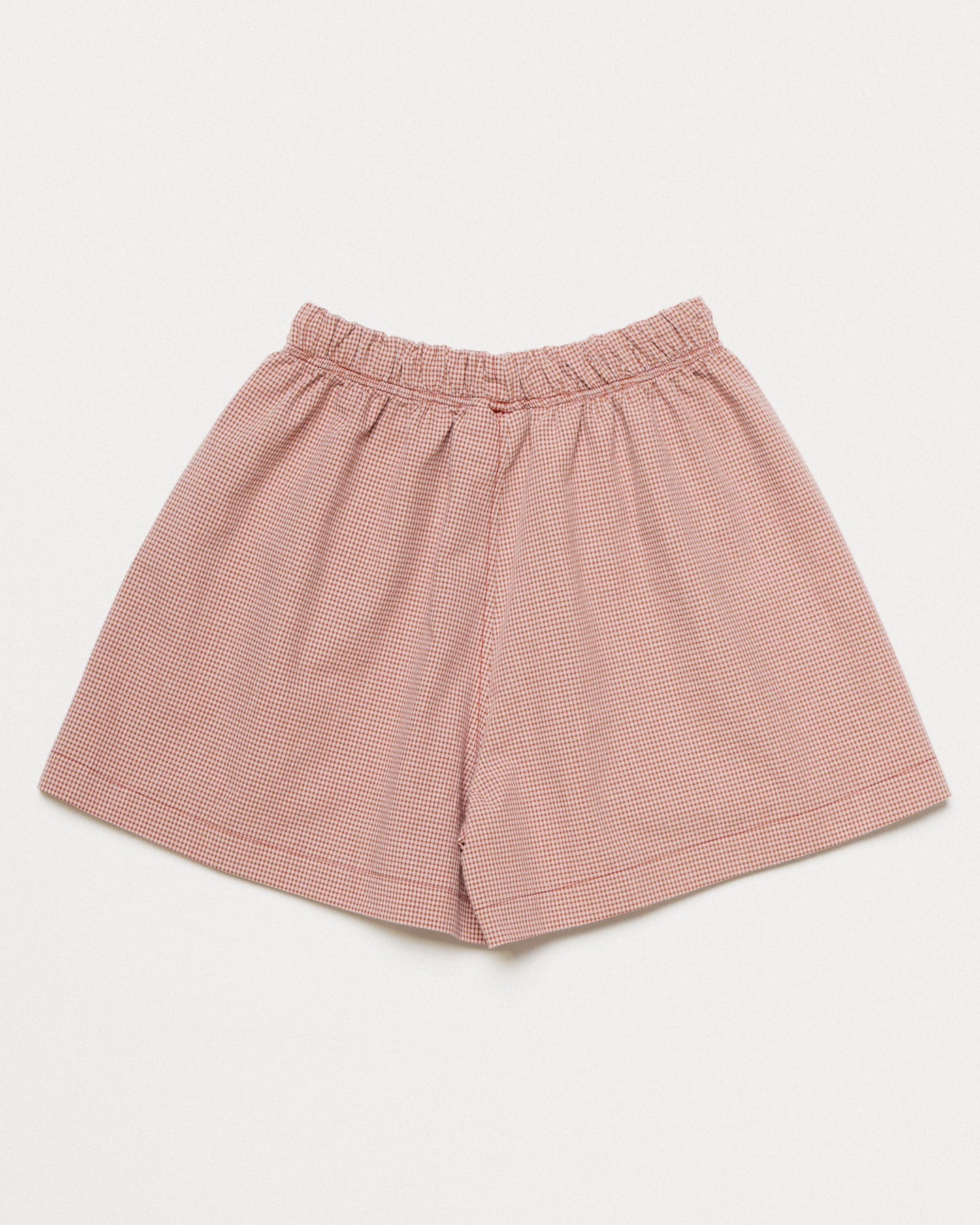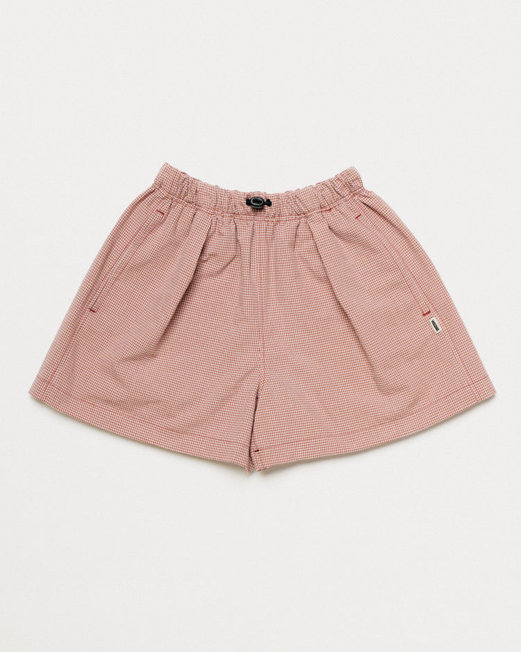 Introducing the Patti Short in red/pink - cut from a lightweight checked fabric in a organic cotton and recycled polyester blend, these are the shorts you'll reach for whether you're navigating the city, heading to the beach, or out on the hills.