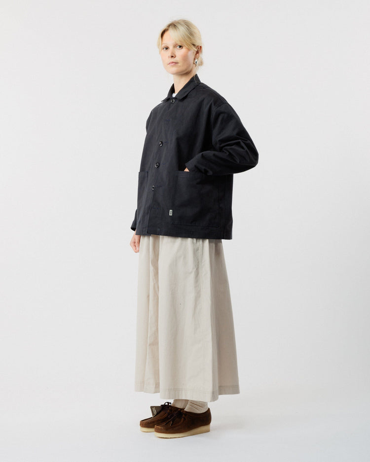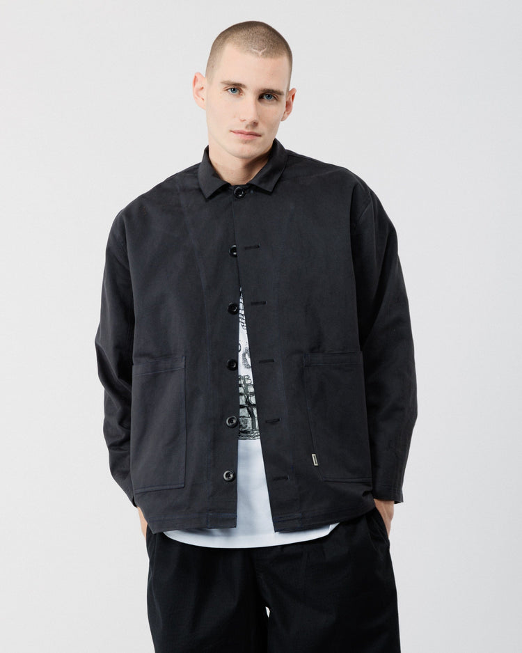 Our Mill Overshirt in black reinterprets the classic chore jacket with thoughtful design and durable, high-quality materials. Made from mid-heavyweight BCI cotton twill, it’s chosen for strength, wind resistance, and the way it softens beautifully over time, getting even better the more you wear it.
